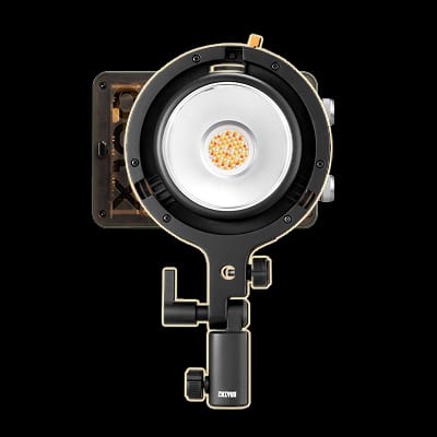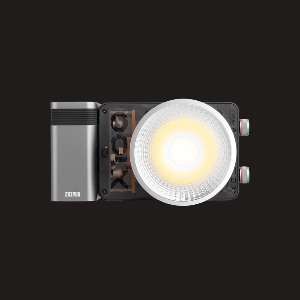灯体底部采用双螺丝孔定位设计,用手柄电源还是DC供电都是左右重量均衡对称,安装轻松且稳固;定制设计灵活小巧ZY卡口,可使用智云mini附件,既能搭配使用定制化控光附件,又能兼容转接保荣卡口附件。