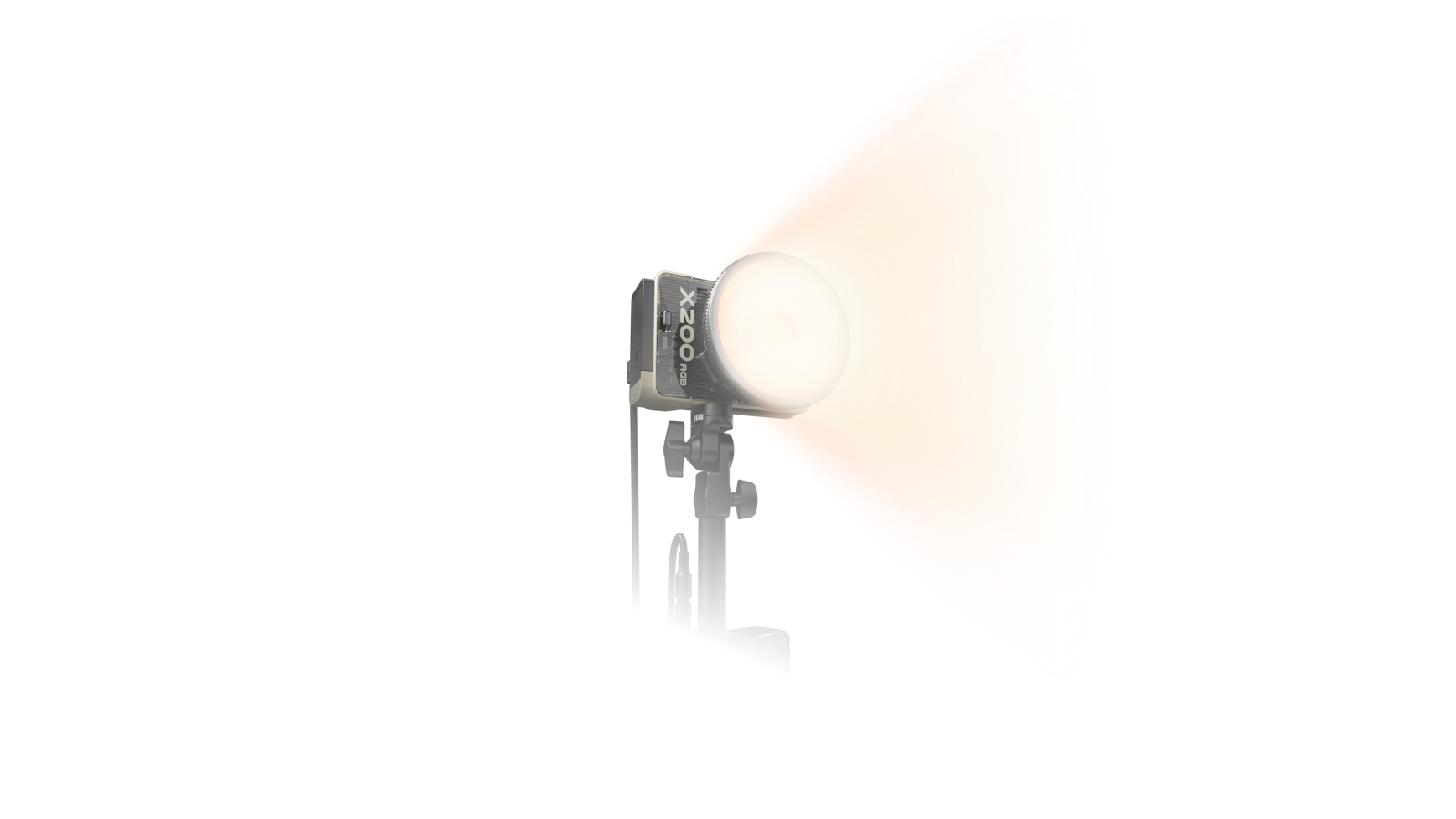 *照度数据为X200搭配匀光镜在1m距离,5500K色温,100%亮度测试所得。